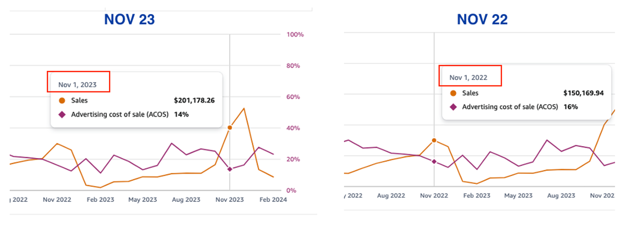 We started managing this account in July 2023, with the goal of growing the YoY sales profitably and maximizing impact in Q4.